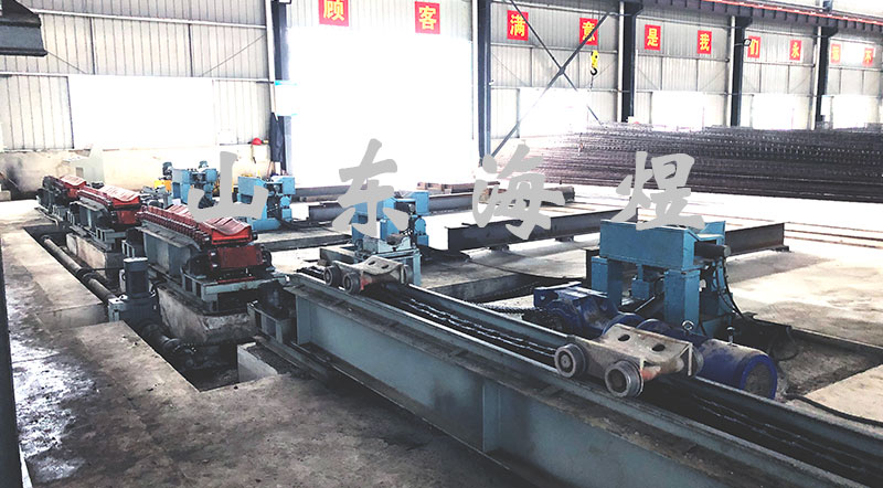 (3)實(shí)現(xiàn)車間局部平面流水自動(dòng)化。在有起重機(jī)的生產(chǎn)工序中,起重機(jī)在上部運(yùn)送鋼模和樁等笨重物件,往往在其下部為工人操作場(chǎng)地和通道等,成為立體交叉流水作業(yè)。而采用鏈板輸送頂升平移系統(tǒng)后,相應(yīng)工序均是在平面內(nèi)全自動(dòng)完成。